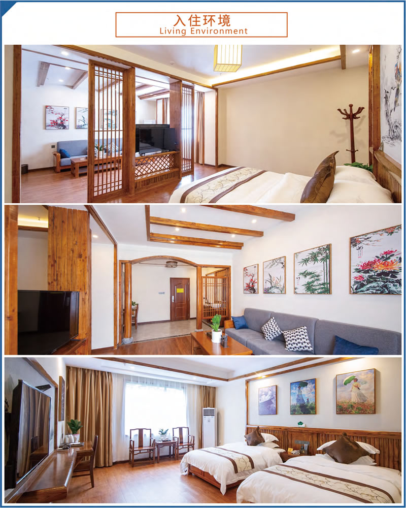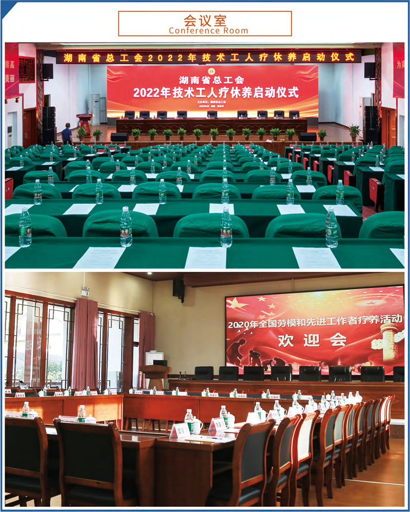 這里設(shè)施完備,環(huán)境優(yōu)美。占地70余畝,建筑面積23000余平方米,由多座湘西民族風(fēng)格的園林建筑群組成。院外依山傍水,院內(nèi)綠樹成蔭,環(huán)境優(yōu)美怡人。現(xiàn)有客房4棟,各類客房279間,中西餐廳可滿足500人同時(shí)就餐。大小多功能會(huì)議室、棋牌室、健身房、藍(lán)球場(chǎng)、羽毛球場(chǎng)等設(shè)施均有配備。