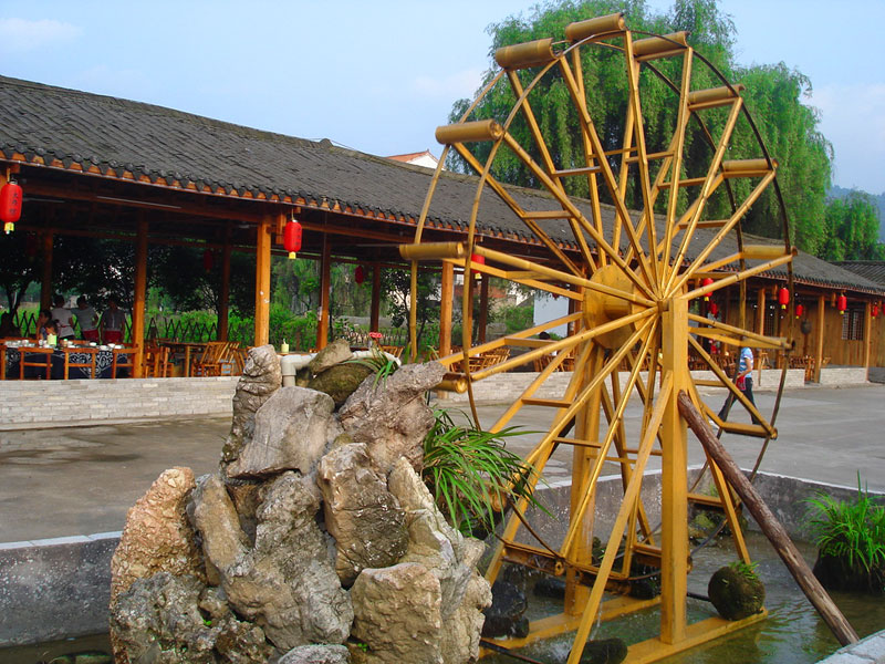 張家界武陵源大作坊美食城是一家集垂釣休閑,特色餐飲,夜市為一體的大型風(fēng)味美食城!位于風(fēng)景如畫的武陵源風(fēng)景區(qū)區(qū)政府所在地,占地3000多平方米,可同時容納400多人就餐。這里也是景區(qū)內(nèi)匯集土家美食,苗家美食的第一坊!美食城按純木四合院建造,內(nèi)設(shè)酒作坊,豆腐作坊,臘味作坊,糍粑作坊,有垂釣區(qū),燒烤區(qū),菜品自助區(qū),客人廚藝展示區(qū),農(nóng)產(chǎn)品展銷區(qū)等。酒作坊內(nèi)聘請了民間煮酒大師現(xiàn)場煮酒,你有機會可以現(xiàn)場吃到熱乎乎的頭鍋酒,酒坊內(nèi)有純米酒,包谷燒,高梁酒,有用野果泡制的各種果酒---燈籠酒,楊梅酒,彌猴桃酒等,更有特色的是把高梁酒放在正在生長的楠竹內(nèi),用竹內(nèi)竹膜的香味把酒增香,十二天就把竹子砍下再放養(yǎng)三天就好了,客人要吃現(xiàn)場鋸竹筒酒吃!豆腐坊也是聘請民間老農(nóng)現(xiàn)場用自制的石磨做豆腐,在這里你可以吃到真正有豆香味的原汁原味的石磨豆腐,和渣,菜豆腐,豆腐腦等豆制品!臘味作坊里有冬天用各種香料熏制的正宗湘西藏臘肉,臘豬頭肉,臘香腸,臘豬腳,各種臘制品臘野味等。糍粑坊每天在晚上人多用餐高峰時現(xiàn)場打滋粑,客人也可以自己參與打糍粑這個快樂的過程,想受過年時才有的熱鬧情景!在垂釣區(qū)里我們放養(yǎng)有很多野生魚類,有時間了你可以來這里休閑垂釣,得到的魚我們就會給你現(xiàn)場加工,有清沌的,紅燒的,青椒燜的,酸湯的,都很好吃哦。燒烤區(qū)里,我們高薪聘請了燒烤大師為你現(xiàn)場制做,你也可以自己動手,有烤羊排羊腿,各種串烤,烤全魚,烤全兔等,還有各種鐵板烤可以自己炒著吃!菜品自己選區(qū)里有各種山野菜,壇子菜,干菜,臘味等,有各種鮮活的魚類,河蛘,水魚,田螺,龍蝦等,有各種農(nóng)家的土雞土鴨等,有各種鮮活的野味等你來享受美味呢!客人廚藝展示區(qū)里老板特設(shè)制地幾口大鍋, 很有特色的是, 你可以自己親自下廚, 酸甜苦辣任您自由調(diào)配 。 煮好了, 大家就圍著這“灶臺”合一的飯桌享受張家界的美食了。(張家界的三下鍋是很有特色的,是邊煮邊吃的, 只是這“三下鍋”是“大型三下鍋”而已。到張家界旅游,吃張家界的“三下鍋”是一種獨有的旅游體驗,到大作坊吃“大型三下鍋”,則更將會為你的旅程增添一份難得的回味。農(nóng)產(chǎn)品展銷區(qū)里展示著當(dāng)?shù)鼗蛳嫖鞯貐^(qū)最暢銷的農(nóng)產(chǎn)品食品:正宗湘西鄉(xiāng)里臘肉,香腸,各種臘制品,洗車河霉豆腐,靈潔牌剁椒辣醬系列,菌油,正宗茶籽油,苗家酸湯,鄉(xiāng)里正宗葛粉,大壇湘西五糧液,竹簡敲敲酒,張家界茅巖霉茶,野生蜂蜜,高山葛粉,張家界第一山珍巖耳,葛根片等等!
