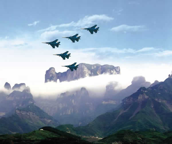 天門洞上空特技飛行表演 還有奇者,天門洞內一年四季總是雨珠滿空飄灑,這就是傳說中的天門洞“梅花雨”。這雨點清涼甘甜,是吉祥的象征,相傳誰要是用口接到四十八滴梅花雨,就能變成神仙。
