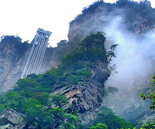 百龍電梯圖片 百龍?zhí)焯輾鈩?shì)恢宏,垂直高差335米,運(yùn)行高度326米,由154米山體內(nèi)堅(jiān)井和172米貼山鋼結(jié)構(gòu)井架等組成,采用三臺(tái)雙層全暴露觀光電梯并列分體運(yùn)行,每臺(tái)次載客50人次,運(yùn)行速度3米/秒,三臺(tái)同時(shí)運(yùn)行每小時(shí)往返量達(dá)4000人次。百龍?zhí)焯莸男藿▽?shí)現(xiàn)“山上游,山下住”的目標(biāo),提供了交通保障,將袁家界天下第一橋、迷魂臺(tái)、天懸白練以及烏龍寨、楊家界等絕世美景從幕后推向了前臺(tái),并將天子山、袁家界、金鞭溪等精品旅游線路連為一體,解決了多年困擾景區(qū)的交通瓶頸問題。