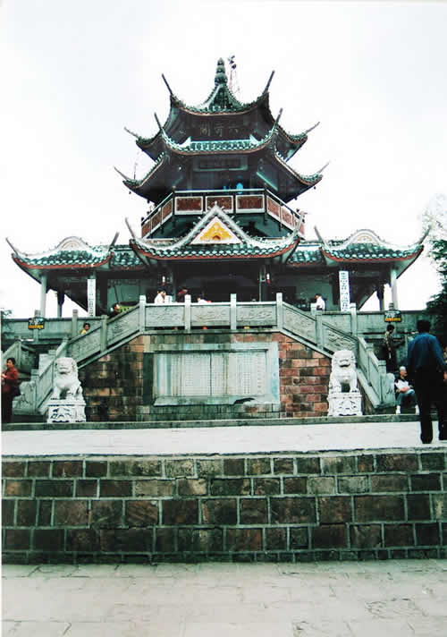 六奇閣是一幢塔狀的樓臺(tái),座落在黃石寨的最高處。它是自然景觀群體唯一的一處人文景觀,突兀在石砌的方臺(tái)基上。湘潭大學(xué)教授羊春秋老先生于此撰聯(lián)曰:名動(dòng)全球,到此真堪三擊節(jié);勢拔五岳,歸來不用再看山。
