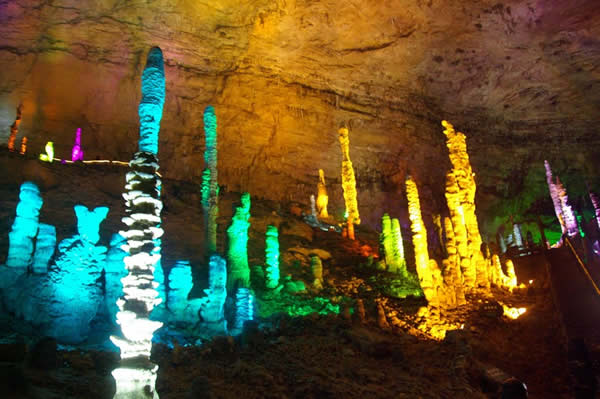 黃龍洞風(fēng)光圖片 世界自然遺產(chǎn)、世界地質(zhì)公園、首批國家5A級旅游區(qū)張家界武陵源的組成部分。2005年被評選為“中國最美的旅游溶洞”。位于湖南省張家界市核心景區(qū)武陵源風(fēng)景名勝區(qū)內(nèi),距離張家界市城區(qū)及張家界荷花機(jī)場、張家界火車站、張家界市中心汽車站36公里,距常張高速陽和出口20公里,有高等級公路張清公路連接張家界市城區(qū)和景區(qū),省道S306直達(dá)景區(qū),屬典型的喀斯特巖溶地貌。1983年,黃龍洞由當(dāng)?shù)?個(gè)青年民兵發(fā)現(xiàn)。1984年10月1日正式向社會(huì)開放。自開放至今,已接待中外游客1000萬人次。