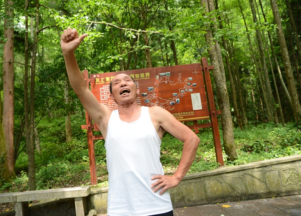 二是老人有個強(qiáng)健硬朗的身板。十多年前,趙如秋查出患有高血壓和腎結(jié)石,他就堅持每天在景區(qū)爬山鍛煉身體,結(jié)果還真的有效,不僅腎結(jié)石消除了,高血壓有所緩解,身體也結(jié)實得很。如今趙如秋老人雖然68了,但說話中氣十足,走路健步如飛,還能挑上150斤擔(dān)子徒步登上鷂子寨、黃石寨,沿路還能唱山歌。