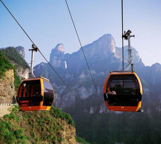 百龍?zhí)焯荩怪备卟?35米,運行高度326米,由154米山體內(nèi)堅井和172米貼山鋼結(jié)構(gòu)井架等組成,采用三臺雙層全暴露觀光電梯并列分體運行,每臺次載客50人次,運行速度3米/秒,三臺同時運行每小時往返量達4000人次。百龍?zhí)焯莸男藿▽崿F(xiàn)“山上游,山下住”的目標,提供了交通保障,將袁家界天下第一橋、迷魂臺、天懸白練以及烏龍寨、楊家界等絕世美景從幕后推向了前臺,并將天子山、袁家界、金鞭溪等精品旅游線路連為一體,解決了多年困擾景區(qū)的交通瓶頸問題。