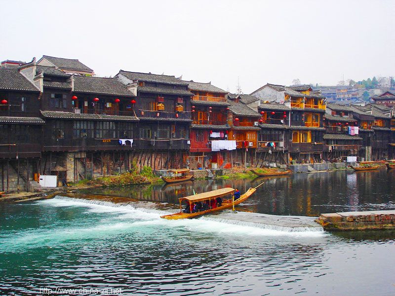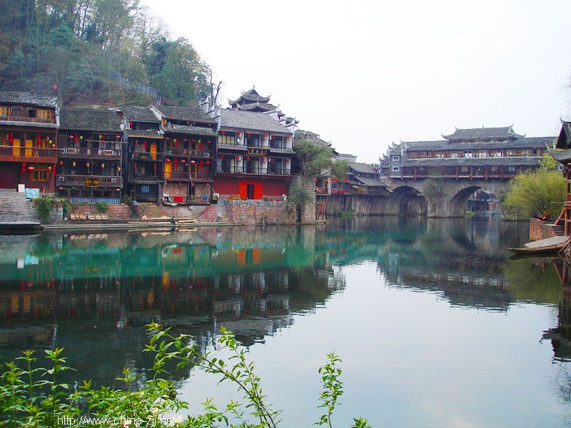 【鳳凰古城位于沱江之畔、群山環(huán)抱、關(guān)隘雄奇、碧綠的沱江依著城墻緩緩流淌,疊翠的南華山麓倒映江中,江中漁舟游船數(shù)點,山間暮鼓晨鐘兼鳴,懸崖上的吊腳樓輕煙裊裊,碼頭邊的浣紗姑笑聲朗朗,兩岸已有數(shù)百年歷史的吊腳樓更是別有一番風(fēng)味;順?biāo)麓┻^虹橋一幅江南水鄉(xiāng)的畫面便展現(xiàn)于眼前--萬壽宮、萬名塔、奪翠樓……一種遠(yuǎn)離塵世的感覺悠然而生;鳳凰--猶如“一幅濃墨淺彩的中國山水畫”】(游覽時間約3小時左右)