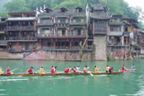 魅力湘西風(fēng)情表演節(jié)目列表: 1,椎牛 吃牛祭又稱“椎!薄ⅰ皵n尼”,是苗族最大的原始宗教祭祀活動(dòng),有著極其悠久的歷史。據(jù)文記載和民間口碑資料證實(shí),它產(chǎn)生于苗族遠(yuǎn)古的漁獵文化時(shí)期,并迅速地在本民族中傳揚(yáng)開(kāi)來(lái)。至新中國(guó)成立前夕,居住在我國(guó)境內(nèi)的各苗族支系幾乎都存有這一習(xí)俗。 2,茅古斯舞 茅古斯舞產(chǎn)生于土家族祭祀儀式中,流傳區(qū)域內(nèi)的各縣志、廳志均有記載。其主要流傳在湘西州龍山縣、永順縣、保靖縣、古丈縣等地。每逢正月,土家族村民結(jié)稻草為服,扮演原始初民漁獵農(nóng)耕等故事,用以祭祀祖先創(chuàng)業(yè)功德,祈求保佑人畜興旺、五谷豐登。茅古斯具有人物、對(duì)白、簡(jiǎn)單的故事情節(jié),及一定的表演程式,以村落或姓氏為單位輪流舉辦,持續(xù)五至九天不等;全用古代土家語(yǔ)演唱,以至有些土語(yǔ)今人無(wú)法翻譯。保留至今的劇目有《做陽(yáng)春》、《趕肉》(即狩獵)、《捕魚(yú)》、《搶親》、《甩火把》等。 3,咂酒 咂酒,古稱筒酒、咂嘛酒、鉤藤酒、竿兒酒等,因其用竹管咂飲而得名。它是苗族人民特有的一種傳統(tǒng)飲料。常在重大節(jié)日、婚喪嫁聚、宴迎賓客等隆重場(chǎng)合飲用。咂酒的釀制,已有近2000年的歷史。飲咂酒時(shí),在場(chǎng)者沿酒甕圍成一圈,由年長(zhǎng)者先飲,然后再由左而右,依次輪轉(zhuǎn)。酒汁吸完后可再?zèng)_,直至淡而無(wú)味時(shí)為止。咂酒一經(jīng)開(kāi)壇,剩酒無(wú)論濃淡,均不復(fù)再用。 4,苗族鼓舞 湘西苗族鼓舞,是我國(guó)苗族地區(qū)最獨(dú)特的舞蹈藝術(shù)。它流傳在湖南省湘西土家族苗族自治州境內(nèi)的吉首市、鳳凰縣、瀘溪縣、保靖縣、花垣縣、古丈縣等。國(guó)家文化部于2004年4月公布第二批中國(guó)民族民間文化遺產(chǎn)保護(hù)工程試點(diǎn)中,湘西土家族苗族自治州列入其保護(hù)試點(diǎn)區(qū)。苗族鼓舞是試點(diǎn)區(qū)的重點(diǎn)保護(hù)項(xiàng)目。 5,米酒品嘗 在一段輕快的舞蹈之后,苗族姑娘們將走下臺(tái)來(lái),送上香醇可口的米酒讓您品嘗…… 土家三杯酒 當(dāng)您走進(jìn)土族人的家門(mén),主要就會(huì)熱情地向您敬酒三杯。這是土族人的禮節(jié),叫做“吉祥如意三杯酒”。主人總是殺雞宰羊準(zhǔn)備豐盛的飯菜,并輪流向客人敬酒敬菜。按土族人的習(xí)慣,杯中酒、碗里飯都要喝光吃盡。如果主人還要添,你可把碗上的筷子擺成十字,意思是“實(shí)在吃不下了啦”。向主人道謝時(shí),主人在大門(mén)口又向每位客人再敬酒三杯,叫“送門(mén)酒”。土族人風(fēng)俗,如果客人右手中指蘸三次酒,對(duì)空彈三下,就可換喝這三杯酒。 苗族牛角酒 苗族群眾喜用牛角斟酒迎接客人。他們一般選擇一種外形美觀的水牛角,用小刀將牛角外刮光,在表面雕刻花紋圖案,然后涂漆上彩。當(dāng)客人來(lái)到寨門(mén)路障(因怕逃酒,特用柴禾和桌子橫放路上,作障礙)前,穿著華麗的苗家姑娘便舉起牛角酒相敬,同時(shí)另幾位姑娘在客人胸前掛兩三只紫色彩蛋,表示吉祥如意。初遇這種場(chǎng)面來(lái)客,見(jiàn)這大約裝有500克酒的牛角,犯了寨規(guī),還得罰酒一杯。其實(shí)牛角酒多為自家釀造的米酒,醇香可口,營(yíng)養(yǎng)極為豐富。尤其在盛夏喝一杯米酒,解渴消暑十分痛快。 6,女兒會(huì) 女兒會(huì)是土家族最具代表性的民族傳統(tǒng)節(jié)日之一,幾百年來(lái)已形成了獨(dú)特的節(jié)俗文化,它因在華夏大地上凸現(xiàn)女性光輝而備受關(guān)注。一般每年的農(nóng)歷7月7日至12日這幾天,是傳統(tǒng)的“女兒會(huì)”吉日,如今已發(fā)展成土家族聚集地區(qū)的民族節(jié)日! 7,哭嫁 哭嫁,是土家族特有的風(fēng)俗,從古一直沿襲至現(xiàn)當(dāng)代,它通過(guò)哭唱的方式,將姑娘隱藏在心底的復(fù)雜心理、細(xì)膩感情表現(xiàn)得淋漓盡致;榍鞍朐轮烈辉,新娘即開(kāi)始哭唱,其形式有一人哭、二人對(duì)哭、多人一起哭等?蕹膬(nèi)容有對(duì)舊制度的抨擊,有對(duì)媒人的揶揄,有對(duì)舊情的抒發(fā),有對(duì)親人的懷念,有對(duì)婦女的贊頌,有對(duì)未來(lái)的憧憬,隨著社會(huì)的進(jìn)步和文明程度的提高,哭嫁的內(nèi)容也不斷翻新。 8,湘西趕尸 觀看提示:《魅力湘西》把它搬上舞臺(tái),根本目的還是滿足觀眾的獵奇探幽心理,讓大家感受湘西獨(dú)特的地理人文之一角。由于現(xiàn)場(chǎng)音樂(lè)恐怖,場(chǎng)面陰森,請(qǐng)觀眾在觀看此節(jié)目時(shí),一定要照看好身邊的老人、小孩和女士。 9,場(chǎng)外篝火演出 土家硬氣功表演,湘西三大蠱迷巫術(shù)表演(包含上刀梯、走鐵梨、下火海),大型土家擺手舞表演。 門(mén)票價(jià)格:2010年門(mén)票價(jià)格待定。 |