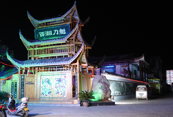 《魅力湘西》國(guó)際文化廣場(chǎng)介紹: 魅力湘西大劇院創(chuàng)立于2001年,歷經(jīng)七年的發(fā)展,已成為全國(guó)著名旅游文化演出實(shí)體,湘西民族特色鮮明,在大陸、港澳臺(tái)等華人地區(qū),乃至韓國(guó)、日本、東南亞等地都享有較高知名度和美譽(yù)度。能容納1080人的演藝場(chǎng)——魅力湘西大劇院,座落于風(fēng)景秀美、奇峰聳立的張家界武陵源風(fēng)景名勝區(qū)內(nèi),古樸典雅,民族風(fēng)味濃厚,與周邊自然景觀相得益彰。 長(zhǎng)期以來(lái),魅力湘西人以發(fā)掘、整理、保護(hù)和表演湘西民俗文化為己任,公司成立之初就樹(shù)立了“走出去、請(qǐng)進(jìn)來(lái)、出精品、創(chuàng)一流”的經(jīng)營(yíng)理念,為打造湘西本土民族民間旅游文化精品而孜孜以求。在各級(jí)黨委和政府及各職能部門(mén)的殷切關(guān)懷和大力支持下,在張家界經(jīng)濟(jì)社會(huì)發(fā)展和旅游文化產(chǎn)業(yè)的帶動(dòng)下,魅力湘西幾年來(lái)迅速壯大,不僅將這臺(tái)晚會(huì)打造成了熱情綻放、飽含民族風(fēng)情的篝火歌舞盛會(huì),更已鑄就成一塊張家界文化旅游界的金字招牌。 以總經(jīng)理?xiàng)罴t為首的管理團(tuán)隊(duì),每年都會(huì)扎根土家吊腳樓和苗寨采風(fēng),搜集、整理了一大批民俗文化表演素材,將民間藝人請(qǐng)出山寨、請(qǐng)上舞臺(tái),使諸多隱匿深山、瀕臨失傳的湘西民俗文化和民間技藝重新展現(xiàn)在世界面前。幾年來(lái),魅力湘西還先后與古丈縣、鳳凰縣陽(yáng)戲劇團(tuán)、省民族歌舞團(tuán)合作,在保留湘西原生態(tài)民俗文化的前提下,將民族音樂(lè)和舞蹈與聲、光、電完美結(jié)合,讓觀眾欣賞到一臺(tái)原汁原味的湘西文化大餐。在提高演出質(zhì)量的同時(shí),滿足了不同文化層次的審美需求,實(shí)現(xiàn)了經(jīng)濟(jì)效益和文化效益的雙豐收。隨著劇院容量的不斷擴(kuò)大,游客接待量也節(jié)節(jié)攀升:2001-2005年,“魅力湘西”大劇院共計(jì)接待游客40萬(wàn)人次,2006年,觀眾數(shù)量開(kāi)始呈井噴式增長(zhǎng),全年接待游客達(dá)25萬(wàn)人次;2007年再次刷新歷史記錄,超過(guò)40萬(wàn)人先后走進(jìn)“魅力湘西”大劇院。目前的魅力湘西大劇院雖有1088座,但已很難滿足不斷增長(zhǎng)的游客觀賞需求。有鑒于此,我們正在武陵源區(qū)規(guī)劃籌建能容納2800人同時(shí)觀看的新魅力湘西大劇院,一臺(tái)更高質(zhì)量、更具魅力的湘西民族風(fēng)情晚會(huì)不日將展現(xiàn)在世人眼前。今后,我們將在已經(jīng)取得良好社會(huì)效益的基礎(chǔ)上,實(shí)現(xiàn)最大的市場(chǎng)效益,我們將更加認(rèn)真研究旅游市場(chǎng),把文藝演出與旅游開(kāi)發(fā)有機(jī)結(jié)合起來(lái),找準(zhǔn)切入點(diǎn),準(zhǔn)確定位,精心編排,進(jìn)一步突出特色,增強(qiáng)吸引力,加強(qiáng)宣傳造勢(shì),力求人人必看;實(shí)現(xiàn)雅俗共賞,人人愛(ài)看。 從開(kāi)始到現(xiàn)在,魅力湘西得到了當(dāng)?shù)卣拇罅Ψ龀趾完P(guān)愛(ài)。2003年,市、區(qū)兩級(jí)政府將魅力湘西大劇院指定為民族民間文化的定點(diǎn)表演單位。各大旅行社也不甘落后,紛紛將魅力湘西文化表演作為張家界之游的必看節(jié)目之一。如今,“白天觀奇山秀水,晚上賞魅力湘西”正成為海內(nèi)外華人和國(guó)際友人們的共識(shí)。 成為蜚聲海內(nèi)外的大型旅游文化集團(tuán),是魅力湘西孜孜以求的目標(biāo)和愿景,讓游客們開(kāi)心、與合作者共贏是魅力湘西不變的經(jīng)營(yíng)理念。魅力湘西將依托當(dāng)?shù)卣拇罅Ψ龀郑回?fù)廣大旅游者的厚愛(ài),開(kāi)拓求新、銳意進(jìn)取、為發(fā)展和弘揚(yáng)中華民族文化而不斷努力。